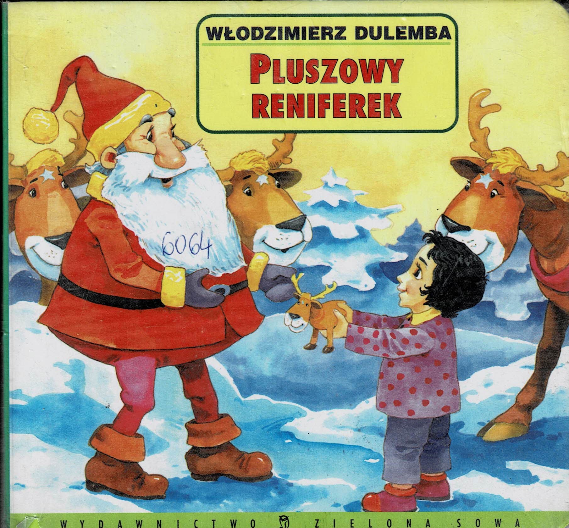 Pluszowy reniferek / Włodzimierz Dulemba ; ilustracje Dorota i Marek Szal. - Kraków : Wydawnictwo Zielona Sowa, [2003]. - [10] stron : ilustracje kolorowe ; 15 x 16 cm.