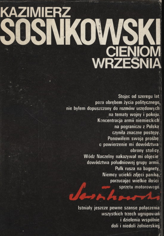 Cieniom Września / Kazimierz Sosnkowski ; przedmowa Andrzej Rzepniewski. - Wydanie 2. - Warszawa : Wydawnictwo Ministerstwa Obrony Narodowej, 1989. - 289, [3] strony, [15] strony map kolorowych ; 21 cm.