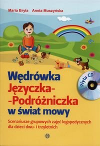 Program terapeutyczny Wędrówka Języczka-Podróżniczka w świat mowy został opracowany z myślą o dzieciach dwu- i trzyletnich. Jest to zbiór trzydziestu scenariuszy, które mogą być realizowane jako cykl ćwiczeń systematycznie prowadzonych w czasie grupowych zajęć logopedycznych lub jako pojedyncze zabawy, mogą też być wykorzystywane do indywidualnej pracy rodzica z dzieckiem. Głównym celem programu jest stymulacja rozwoju mowy dzieci poprzez harmonijne rozwijanie innych funkcji psychicznych: spostrzegawczości, pamięci, wyobraźni, uwagi. Ćwiczenia stymulujące rozwój mowy wzbogacają czynny i bierny słownik dziecka, usprawniają pracę aparatu artykulacyjnego, oddechowego, fonacyjnego oraz pobudzają do komunikacji werbalnej. Dzieci uczą się także budowania pierwszych relacji społecznych. Zawarte w programie ćwiczenia mają charakter zabawy, tematyka zajęć nawiązuje do najbliższego otoczenia maluchów – koncentruje się wokół domu, rodziny, zabawek, zwierząt domowych, poznawania własnego ciała. W scenariuszach zaproponowano wiele zabaw ruchowych w formie ćwiczeń logorytmicznych, kształcących orientację w schemacie własnego ciała, poczucie rytmu oraz koordynację wzrokowo-słuchowo-ruchową. Opracowano także zabawy manualne, takie jak: ugniatanie modeliny, zbieranie ryżu, malowanie farbami (całą dłonią lub palcami), wydzieranie papieru, przyklejanie, kolorowanie na dużych kartkach papieru, wycinanie. Ćwiczeniom praksji oralnej towarzyszą masaże: masaż Shantala, który pozwala na wyrównanie napięcia mięśniowego w obrębie twarzy, masaż stóp i rąk, masaż aktywizujący pracę języka oraz masaż przygotowujący dziecko do mówienia...(http://www.empik.com/wedrowka-jezyczka-podrozniczka-w-swiat-mowy-cd-bryla-maria-muszynska-aneta,p1084408405,ksiazka-p)