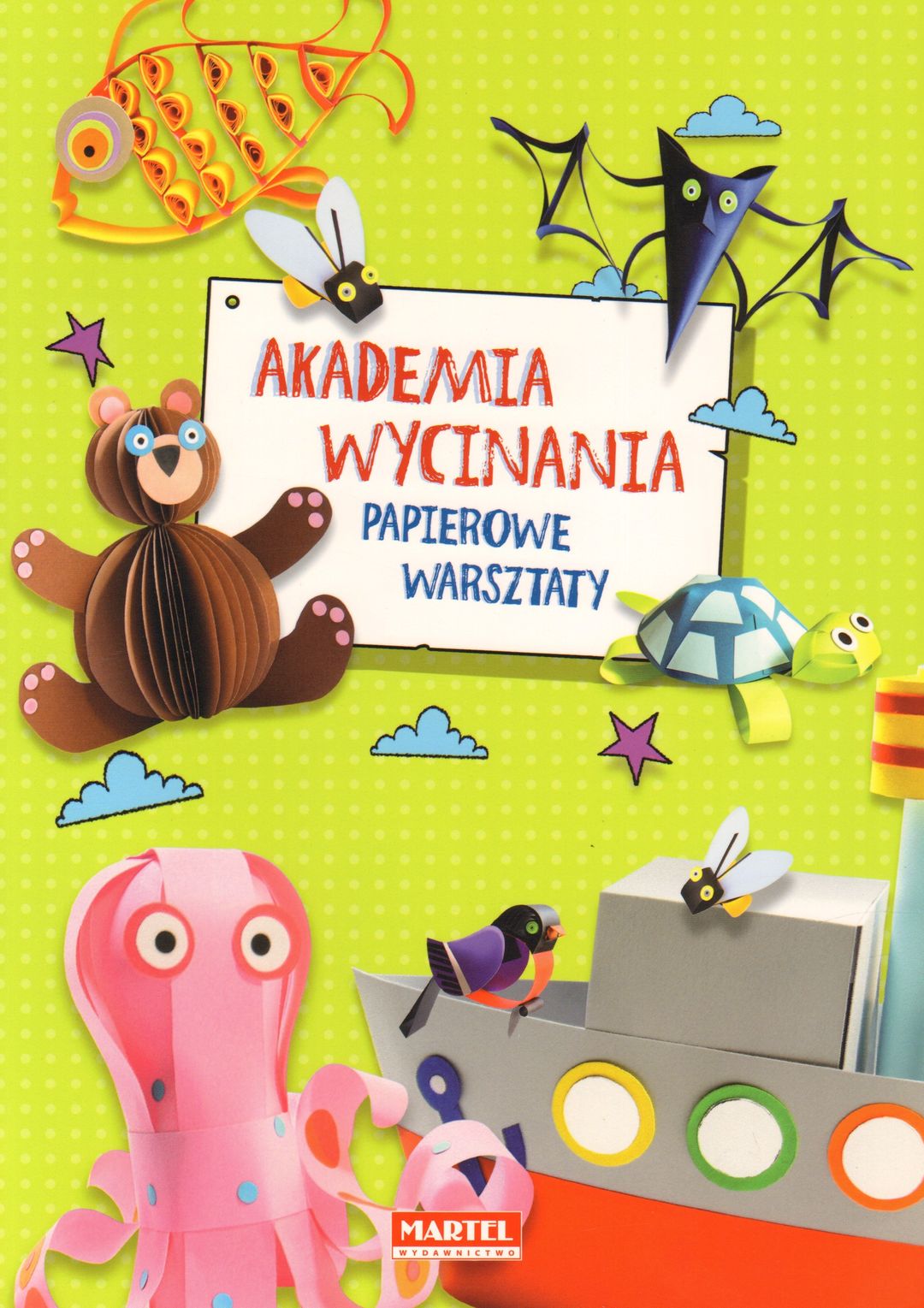 Każdy rodzic chciałby pokazać dziecku jak wyciąć samochód, misia, rybę i wiele innych wspaniałych kształtów. Nasza książeczka pokazuje, że wcale nie trzeba do tego specjalnych umiejętności! Akademia wycinania Papierowe warsztaty to wspaniała książeczka, dzięki której każde dziecko będzie mogło wyczarować z papieru sympatyczne zwierzątka, piękne kwiaty i inne oryginalne ozdoby. Wystarczy tylko trochę kolorowego papieru, nożyczki i klej. Wszystkie zawarte w książce propozycje są bardzo łatwe do wykonania. Dodatkowo każdy opis opatrzony jest barwnymi fotografiami, na których przedstawiono, krok po kroku, jak należy wykonać papierową ozdobę. Książka ta nie tylko zapewni dziecku twórcze spędzenie wolnego czasu, ale także da poczucie satysfakcji z własnoręcznie wykonanej pracy!